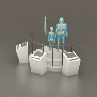 TIP_11Bone structure consists of bone, a hard and durable tissue that provides the body’s support system. Bones also perform important functions, such as the production of blood cells, thanks to the bone marrow it contains.The life-size skeleton model introduces the