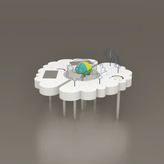 TIP_03The visitor learns the part and structure of the brain thanks to the brain model in the middle of the table.He can compete with his friend and also with himself by playing a math game on the touch screen in the left lobe.In the right lobe table, he tries to pass the tool in his hand without touching the wire.If he is better at the game in the left lobe, he has mathematical abilities.If he is better at the game in the right lobe, he has more information, shape and imagination.