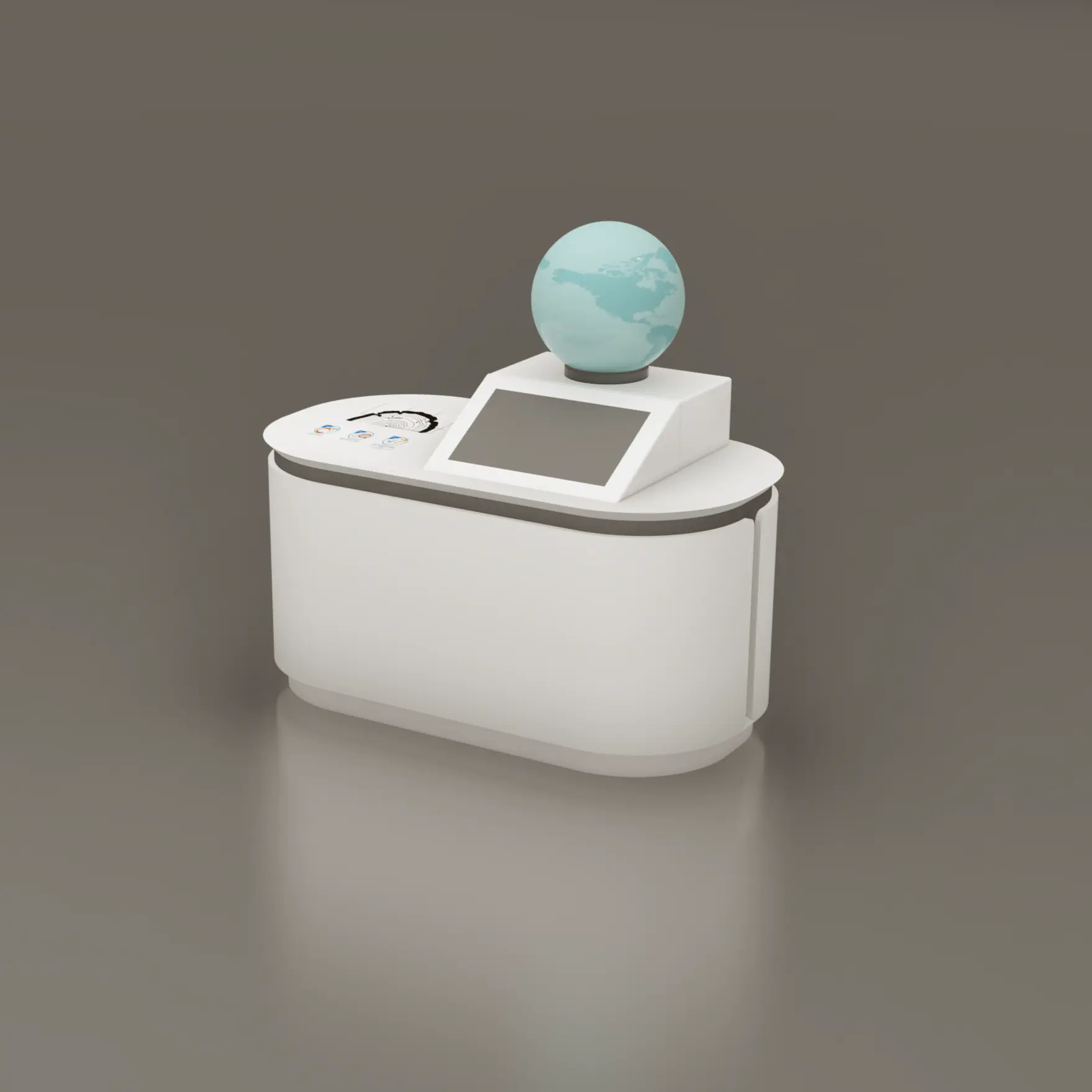 Visitors observe the greenhouse gas effect on the surface of the 3D acrylic sphere, whose formation is represented by colored light. In order for the effect to become visible, the visitor is expected to move forward using the menu on the screen. In parallel to the narrative in the menu, the warming of the earth is represented by the changing lights reflected on the sphere.