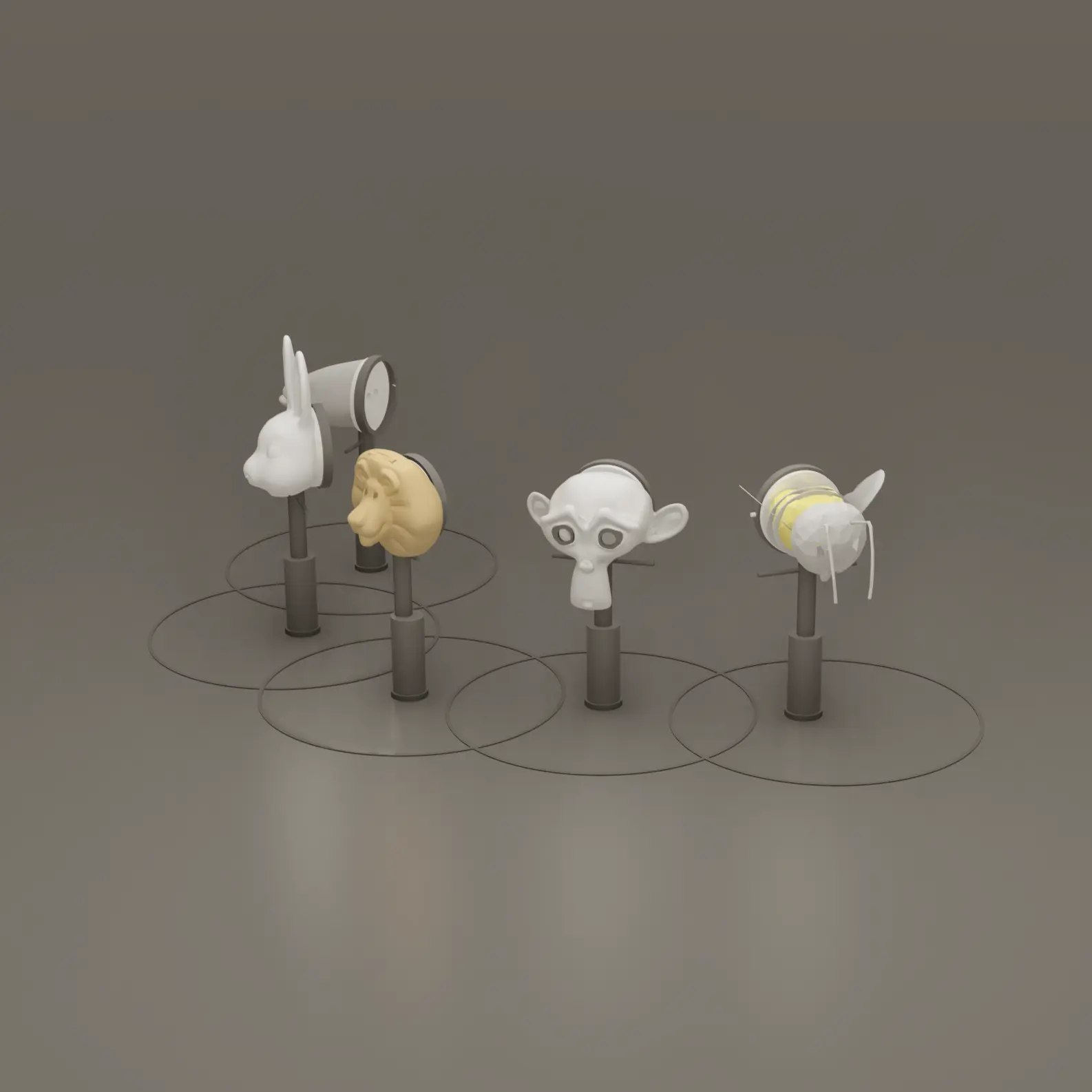 holes on the back of the animal heads, they first see the image in normal colors. When they press the button on the side
